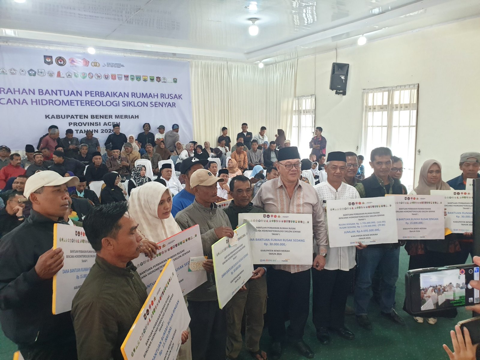 Redelong — Sebanyak 194 kepala keluarga (KK) di Kabupaten Bener Meriah menerima bantuan stimulan perbaikan rumah rusak akibat bencana hidrometeorologi yang terjadi pada 26 November 2025.