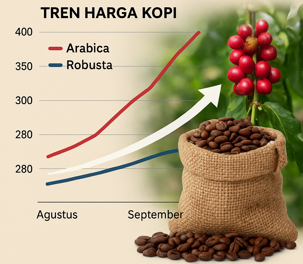 Harga kopi dunia mengalami lonjakan drastis sejak awal Agustus 2025. Berdasarkan data perdagangan internasional, harga kopi naik dari US$284,20 per pon pada 1 Agustus menjadi sekitar US$400 per pon per 11 September. Kenaikan lebih dari 40 persen ini membuat pasar global heboh.