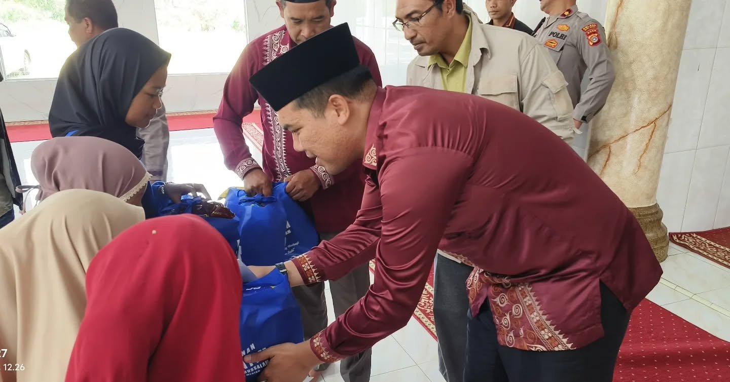 Redelong – Asisten Pemerintahan, Keistimewaan Aceh, dan Kesra Setdakab Bener Meriah, Khairmansyah, S.IP., M.Sc, memberikan santunan kepada anak-anak yatim piatu di Masjid Babussalam, Desa Simpang Lancang, Kecamatan Pintu Rime Gayo, Kamis (4/8/2025).
