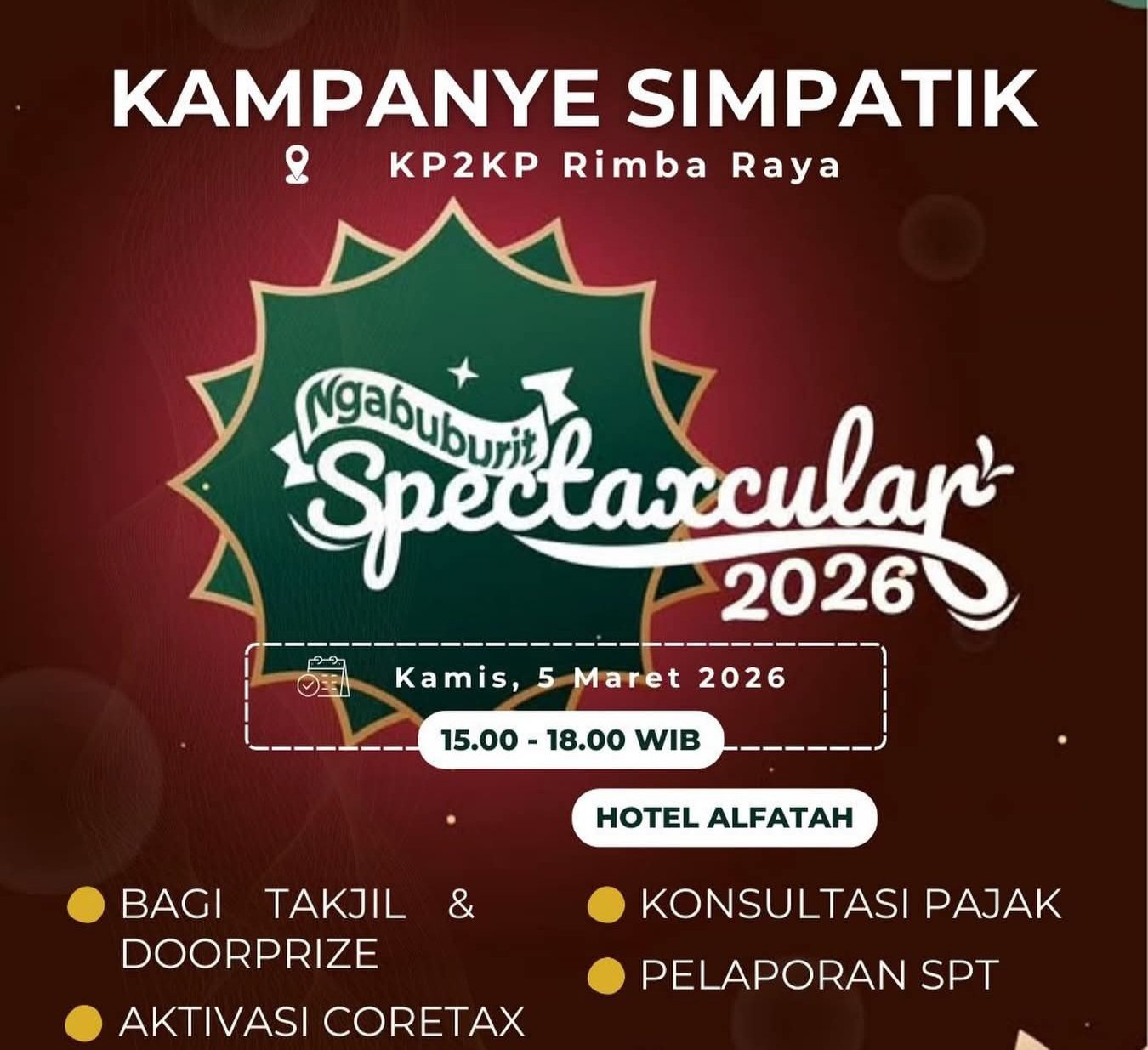 Lewat kegiatan bertajuk “Ngabuburit Spectaxcular 2026”, kantor pajak tersebut turun langsung menyapa warga sambil membuka layanan pelaporan SPT Tahunan dalam suasana santai menjelang berbuka puasa.