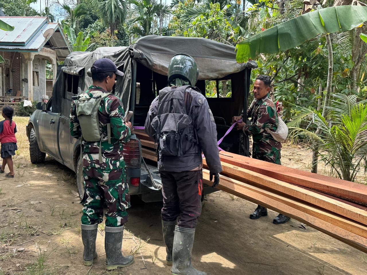 “Penurunan material ini menjadi tahap awal pembangunan rumah warga. Kami bersama masyarakat bekerja sama agar proses pembangunan berjalan lancar dan selesai tepat waktu,” ujar Serda Suhedy Putra.