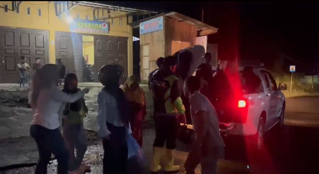 Sejak pukul 22.00 WIB, petugas dan warga bahu-membahu membantu pengendara yang terpaksa berjalan kaki menyeberangi aliran sungai. Proses evakuasi berlangsung hingga tengah malam.