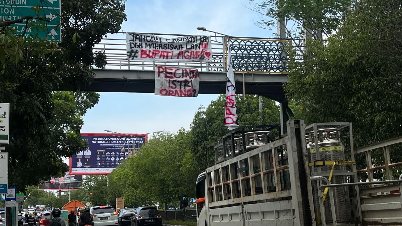 Kemunculan Spanduk Kritik tersebut langsung menarik perhatian masyarakat karena menampilkan pesan tajam dan terbuka yang mudah terbaca oleh pengguna jalan.